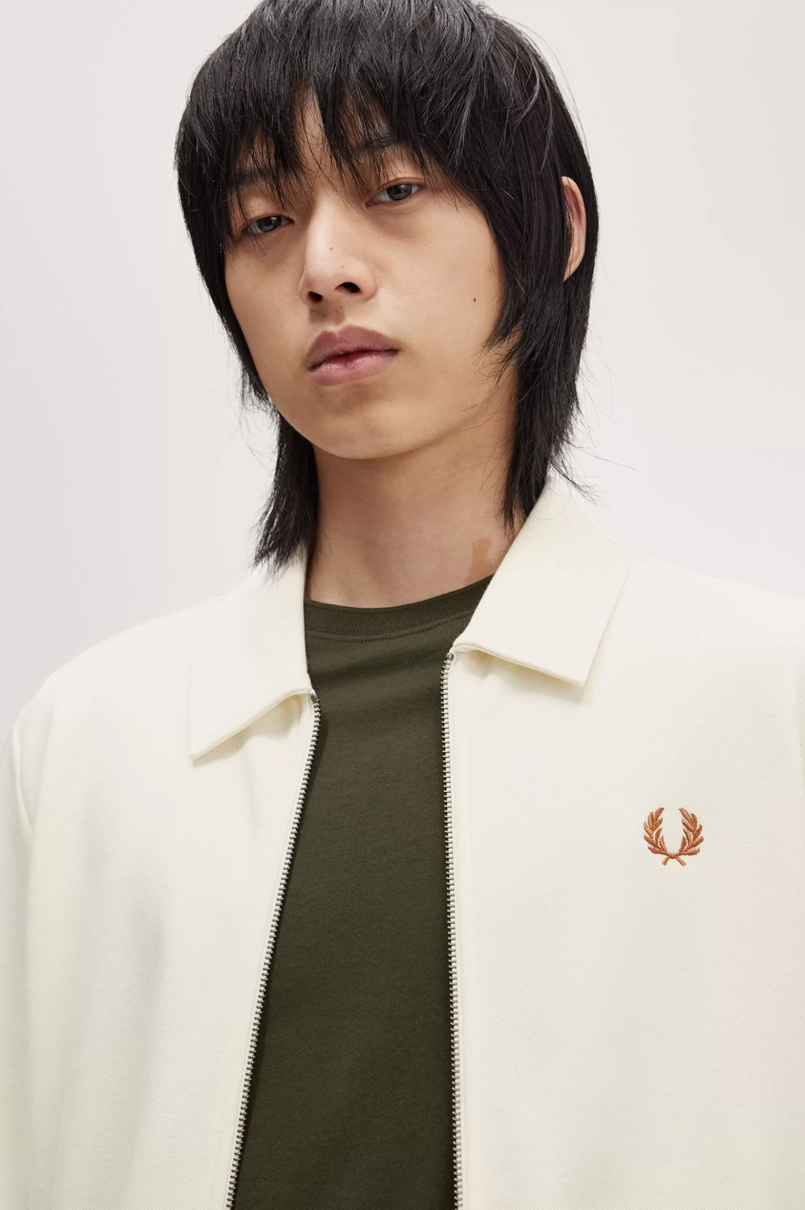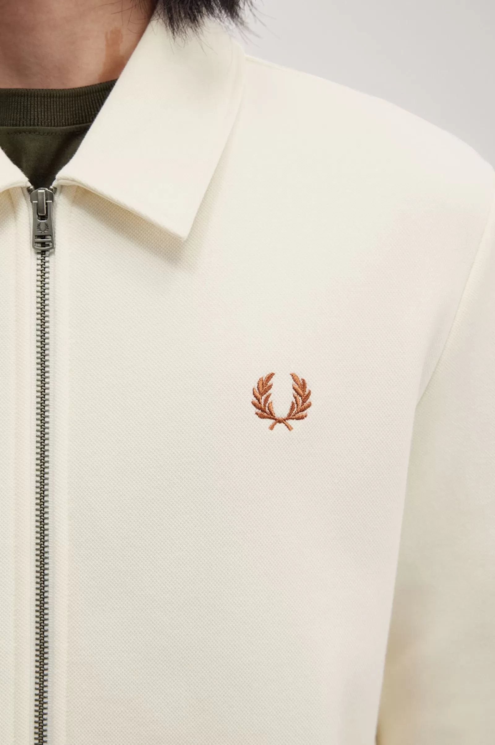 A sharp overlayer with a two-way zip, in the fresh off-white tones of sporting kit.Cotton and polyester blend piqué tex…