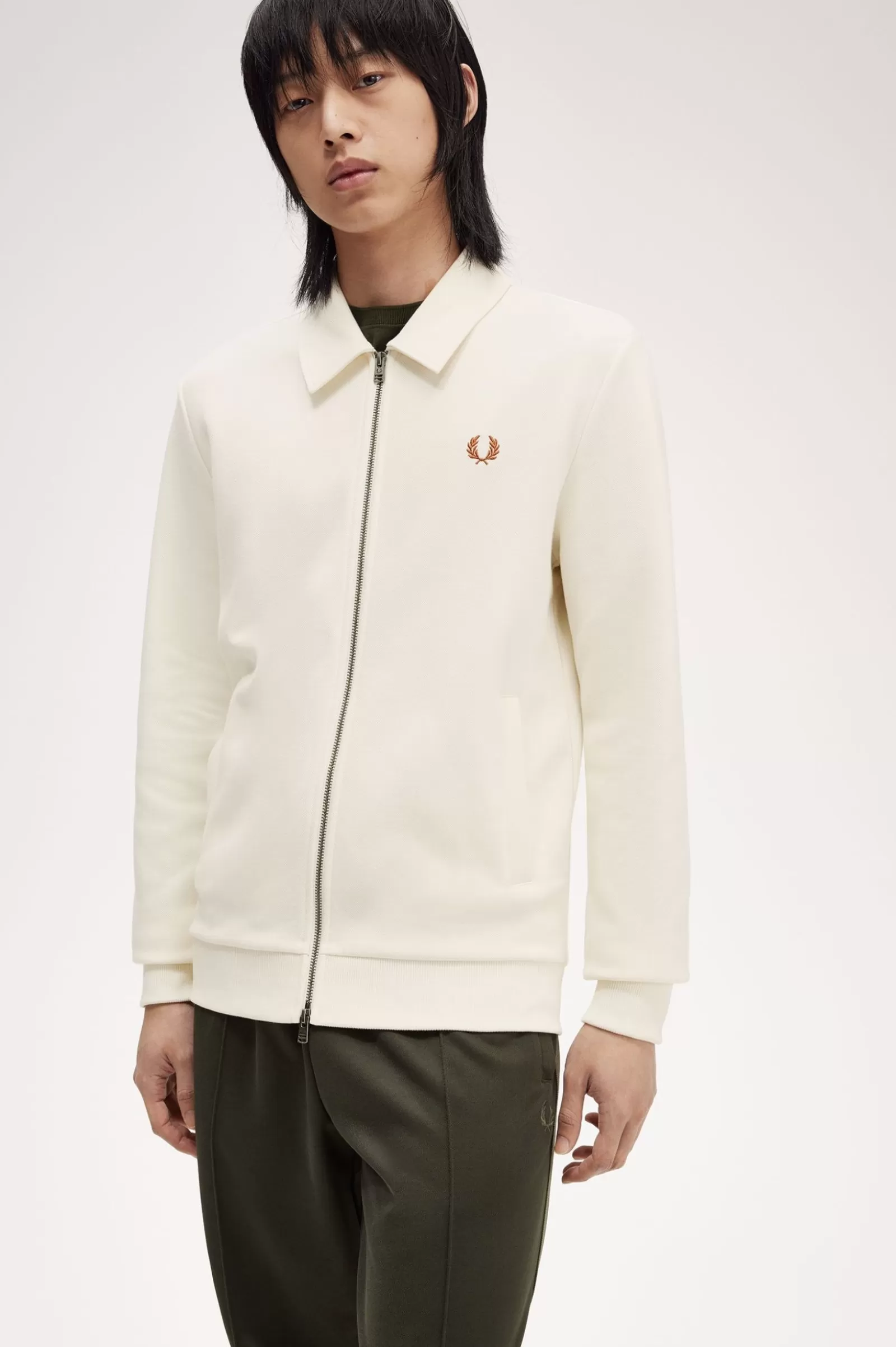 Cotton and polyester blend piqué texture fabric / Regular fit / Brushback fleece internal lining / Flat collar with silver-tone zip fastening / Embroidered Laurel Wreath logo on the left hand chest
